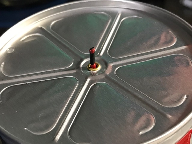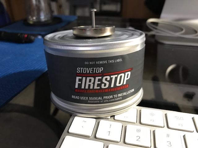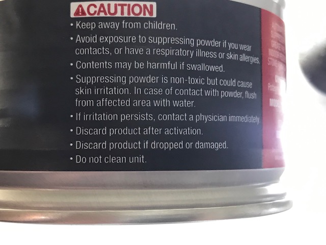 Although the print on the can is enlarged here, it’s actually hard to read. I have magnifying glasses and still had to use a hand-held magnifyer, plus the silver on black was not a good color contrast. It’s barely noticeable. My nagging questions are 1- who provided these devices, and 2- how long did they set in the supply room and 3- who delivered them?